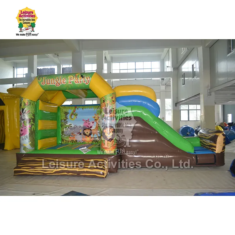 Leisure Activities® Inflatable ist ein OEM-Hersteller hochwertiger kleiner aufblasbarer Multiplay-Hüpfburgen für Dschungelpartys mit Rutsche. Wir arbeiten eng mit Kunden zusammen, um Produkte genau an ihre Spezifikationen anzupassen. Wir respektieren strikt die Rechte an geistigem Eigentum und reproduzieren proprietäre Designs nicht ohne Genehmigung.